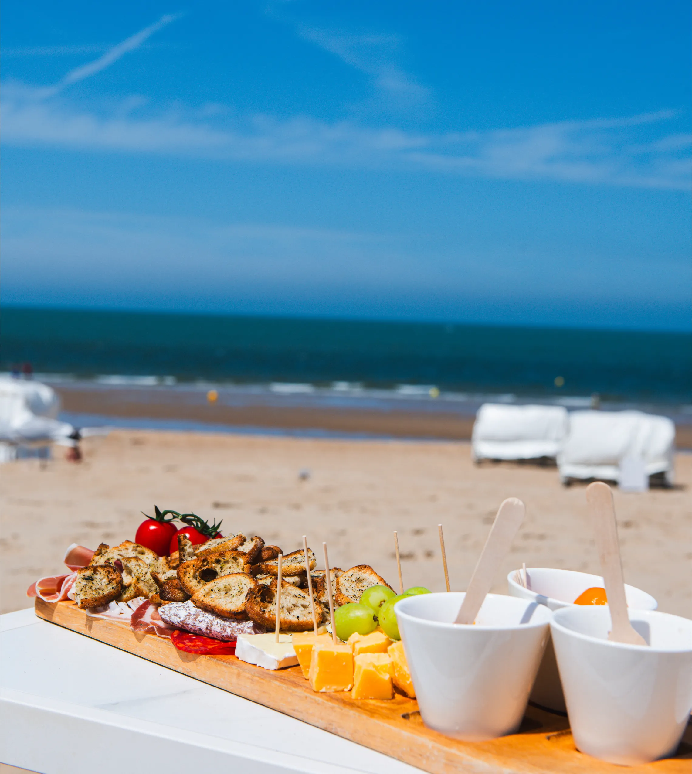 Onze menukaart biedt een selectie van mediterrane bites, truffelchips, sliders, verfijnde sharing plates en meer — perfect voor een ontspannen middag aan zee.